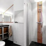 Central City Apt On One Of Bergen'S Finest Streets features a sitting area and looks out onto the garden. The property is also furnished with a sofa set. A bathroom comprises a separate toilet and a shower. Additionally, you'll find hairdryers and bath sheets.